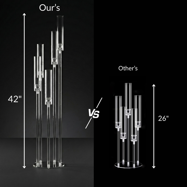 Elevate Your Event Atmosphere Transform any space into a scene of modern luxury with the Milroy 5-Arm Acrylic Candelabra. Whether you are planning a dream wedding, a corporate gala, or an intimate holiday gathering, this 42-inch tall stand provides the perfect blend of contemporary architecture and classic elegance.