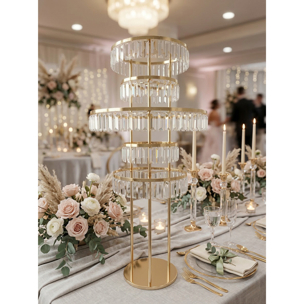 Crafted from high-quality, durable iron and accented with shimmering acrylic beads, this stand features a unique 5-tier ring design that allows for lush, multi-level floral cascading. Whether you choose the warm radiance of French Gold or the sleek modernism of Chrome, the polished finish catches every light in the room, adding a layer of sophisticated glamour to your event.