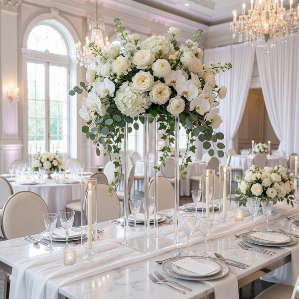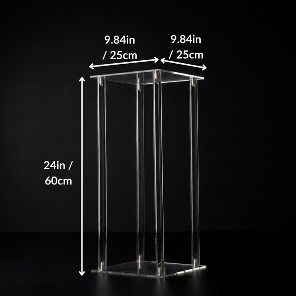 Elevate your celebration with the Acrylic Harlow Wedding Flower Stand. These tall rectangular columns provide a sophisticated, modern pedestal for your most stunning floral arrangements. Crafted from premium, high-transparency acrylic, these stands create a "floating" effect for your centerpieces, allowing for unobstructed views and easy conversation across the dinner table.